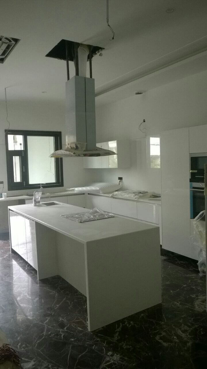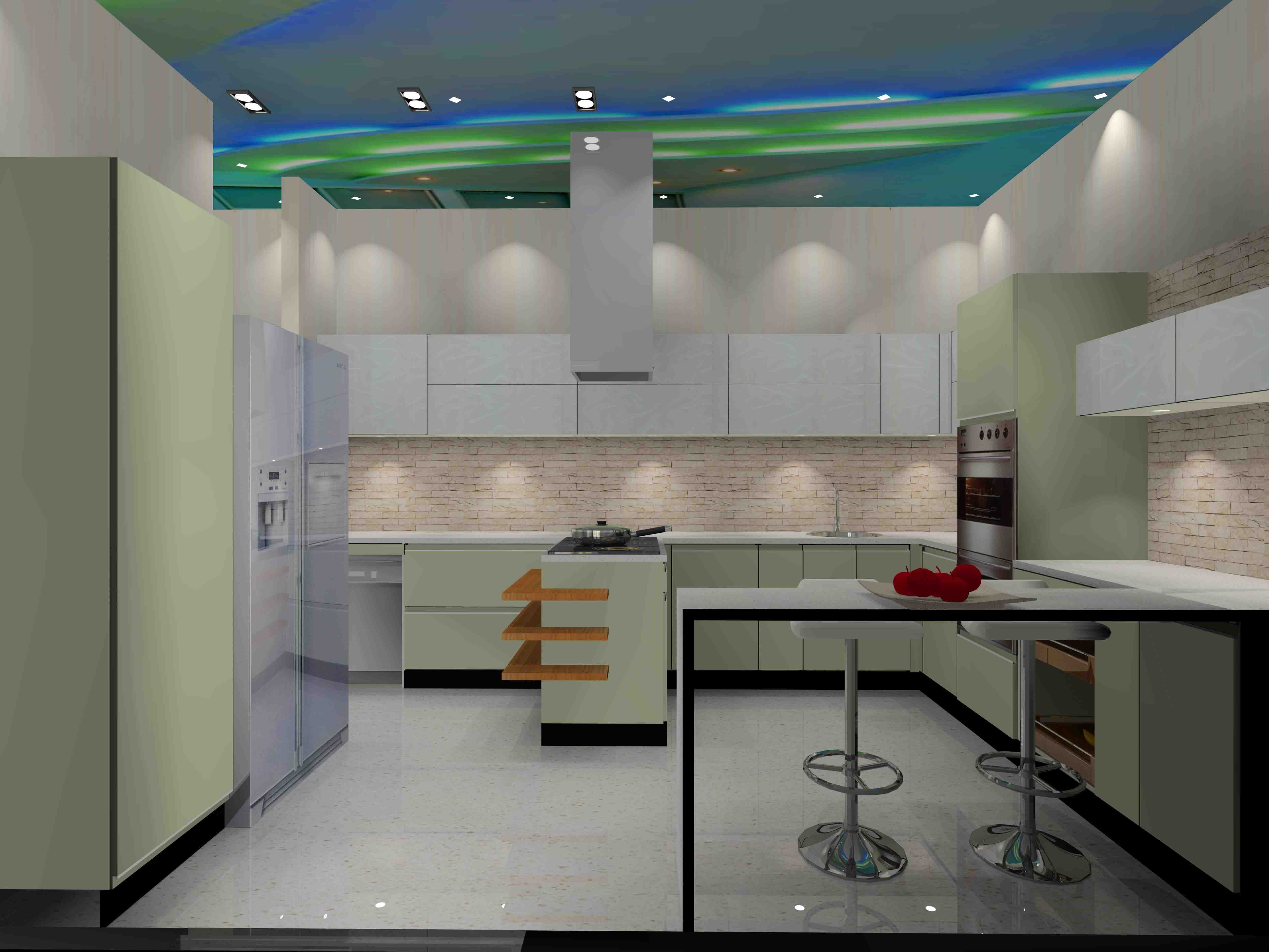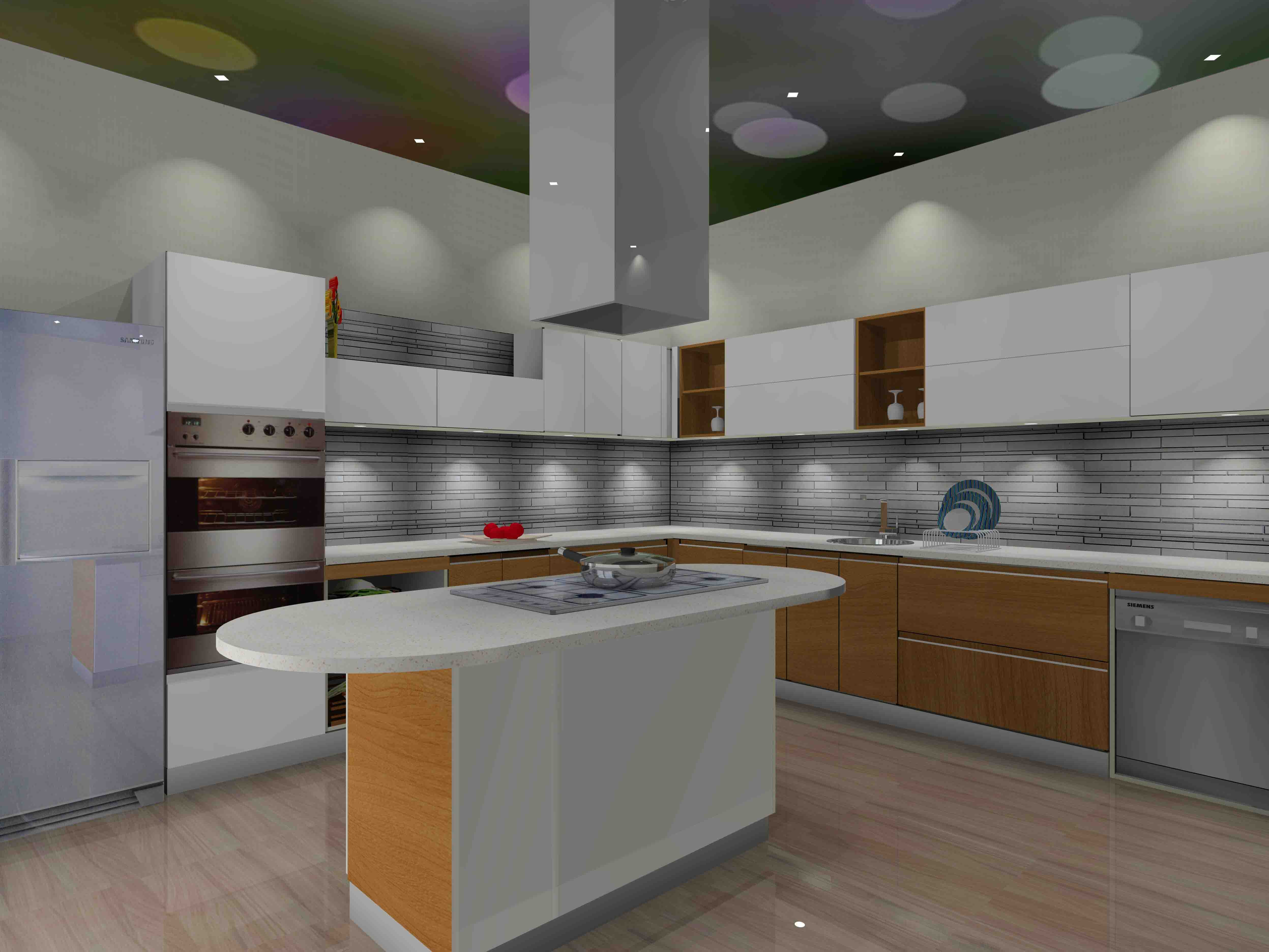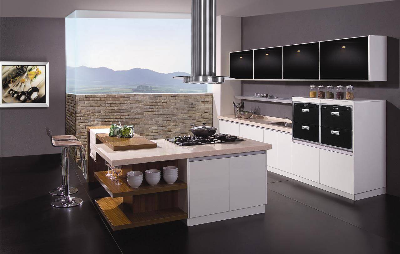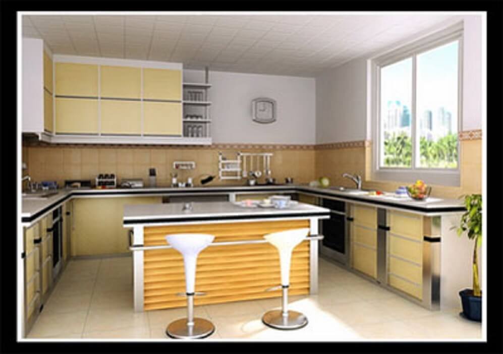 A kitchen island, is a free standing unit, that works as an additional storage space. It can be easily incorporated into an L-shaped, G-shaped, or U-shaped kitchen.
