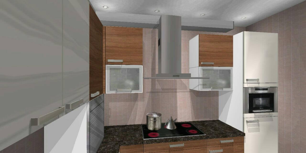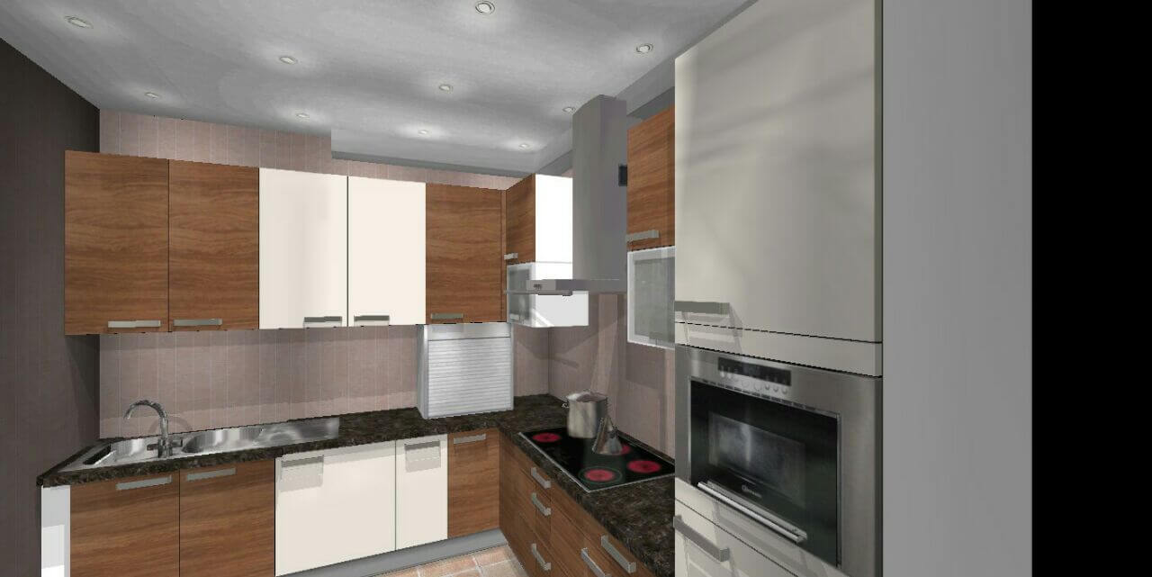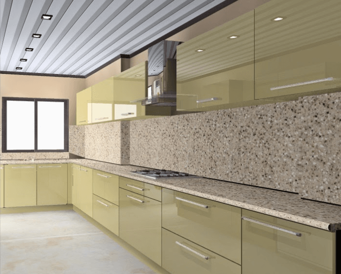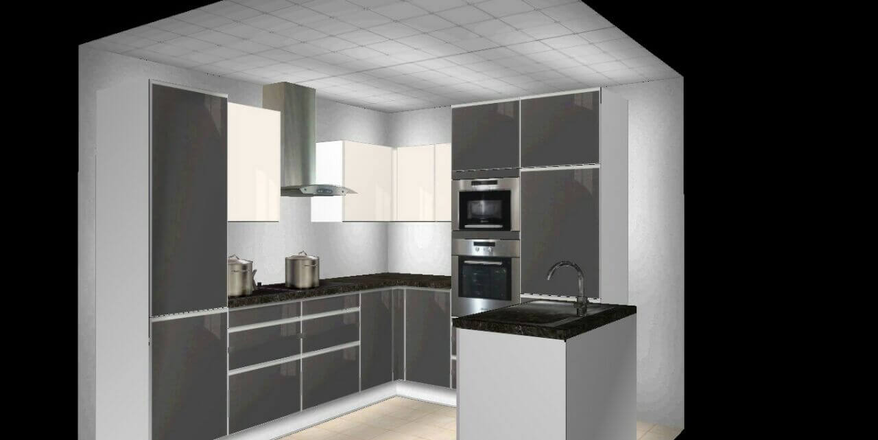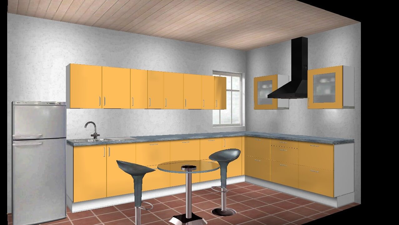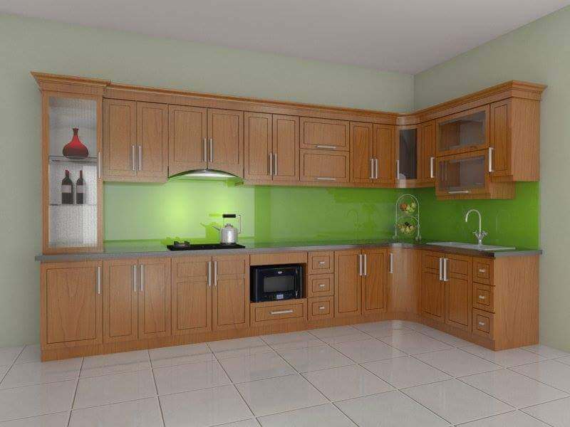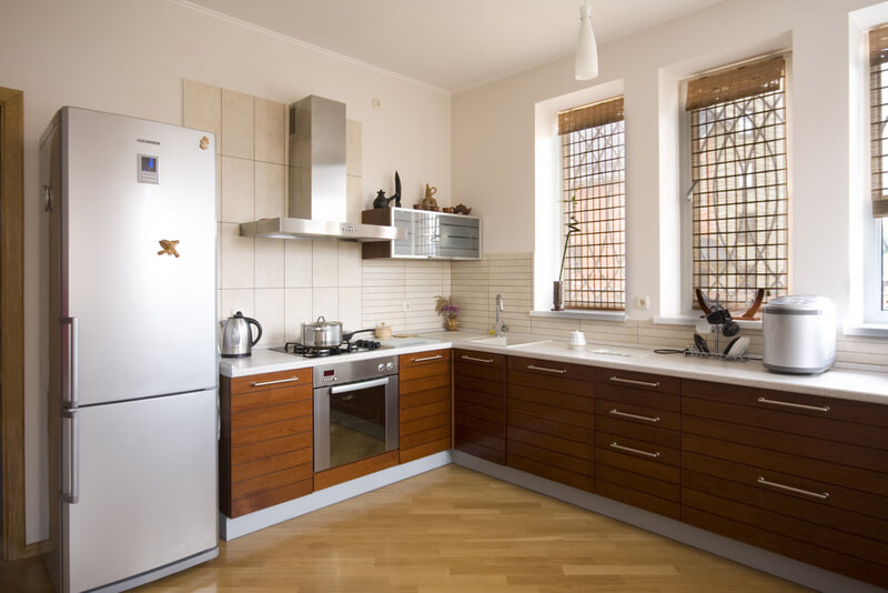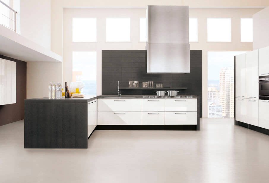 As the name suggests, an L-shaped kitchen, uses two walls of the room, to create an "L"shape. These are quite unobtrusive, and work best in houses with an open plan.