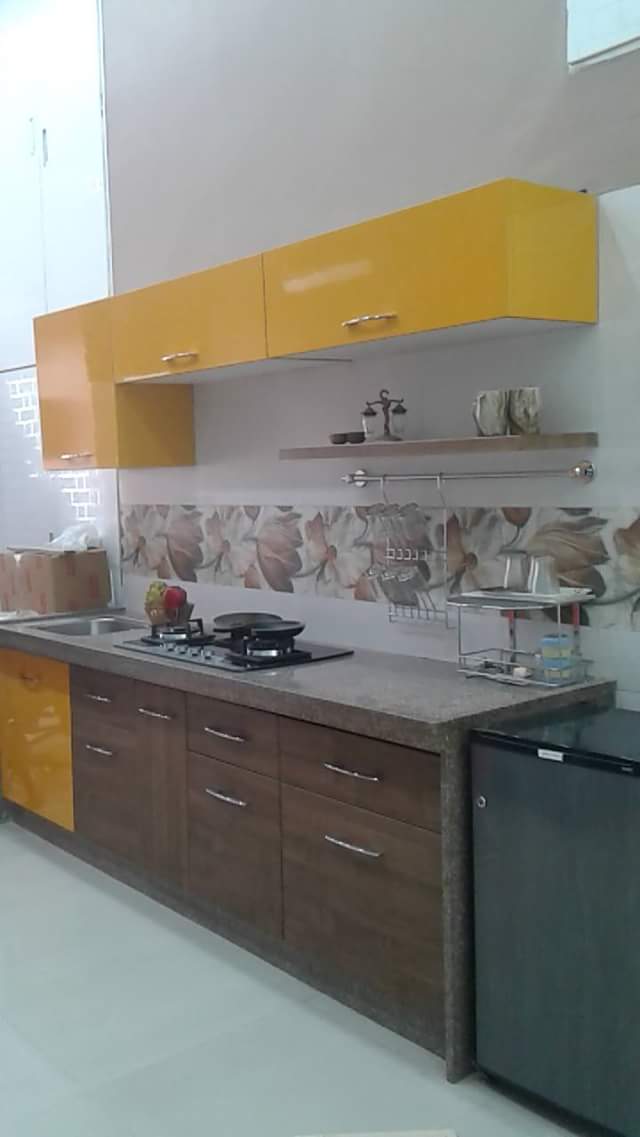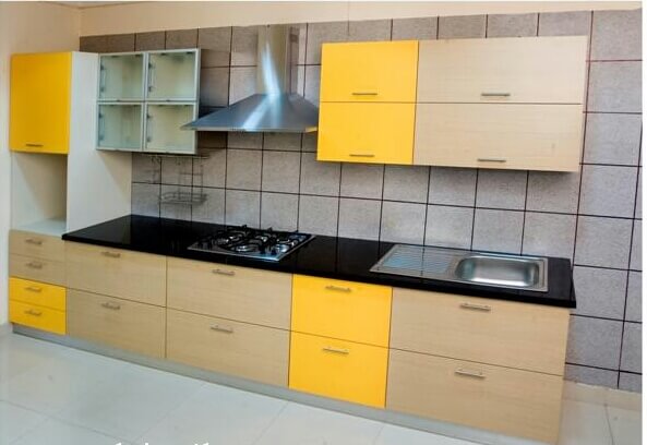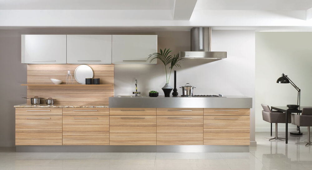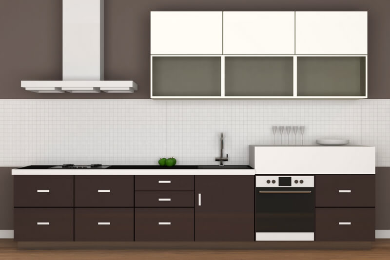 The biggest advantage of single wall kitchen design, is the superior utilisation of space. These are best suited to smaller apartments, where there is limited work area available.